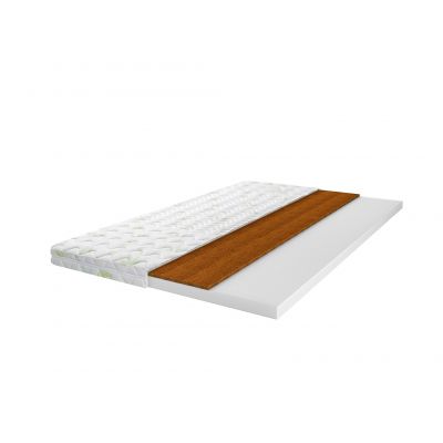 Натуральный гипоаллергенный материал. Благодаря пропитке из натурального латекса, волокна прочно скреплены в цельную плиту. Кокосовое волокно придает матрасу жёсткость и обладает бактерицидными свойствами.