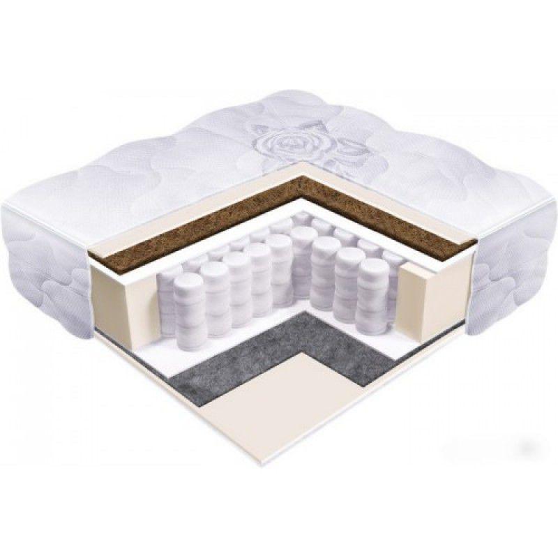 Матрас двусторонний с разной жесткостью сторон. Модель изготовлена на основе независимых пружин, который обеспечивает хорошую поддержку спине во время сна. Кокосовая плита добавляет жесткости с одной стороны матраса, а пенополиуретан мягкости с другой.