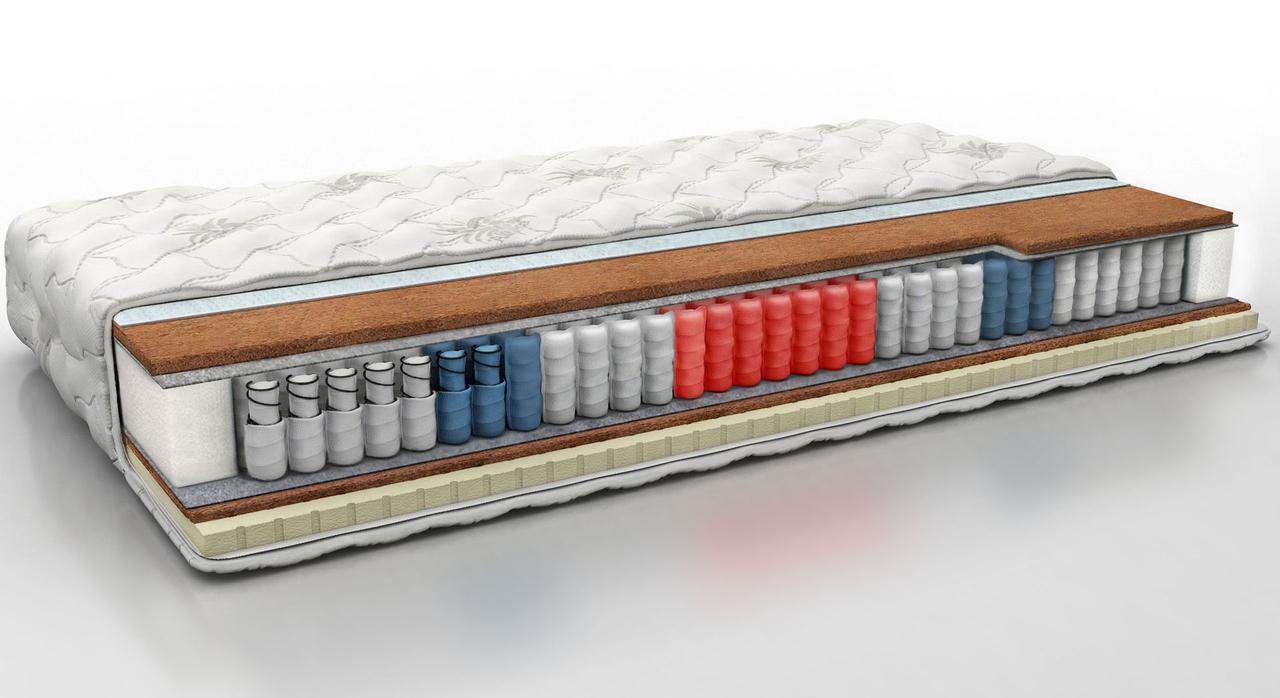 В матрасе используется блок независимых пружин с 7 зонами различной упругости, которая достигается использованием пружин различающихся по диаметру проволоки, опорных витков и высот. Такой блок обеспечивает идеальную адаптацию к анатомическим особенностям строения тела человека.