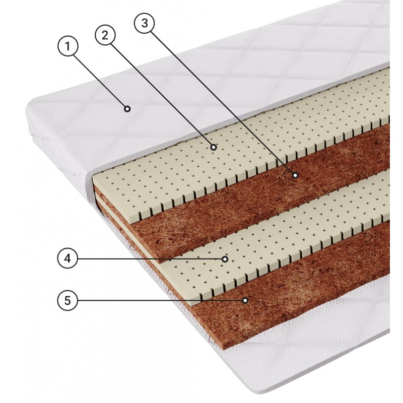 3,5 Латексированная кокосовая койра (3см + 3см) Кокосовая койра - 100% натуральный материал с уникальными свойствами. Койра, скрепленная натуральным латексом, дает объемную упругую воздухопроницаемую структуру. Такой материал используется в моделях, предназначенных для любителей более жесткого и упругого спального места. Естественные вентиляционные качества, эластичность, прочность, упругость, гигиеничность и антиаллергенность, наряду с очень долгим сроком службы, делают этот материал идеальным для наполнения матраса. |