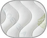 1.ЧехолСъемный чехол из стеганой трикотажной ткани ALOE VERA. Трикотажная ткань ALOE VERA производится из эластичных натуральных хлопковых волокон и запатентованной пряжи, состоящей из специальных мягких волокон. Эта ткань, в отличие, например, от синтетики, может выступать в качестве абсорбента: впитывать кожные выделения и выталкивать влагу из матраса. Таким образом, обеспечивается свежий и сухой микроклимат между кожей и тканью.
