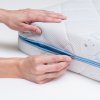 5 Съемный трикотажный чехол Чехол выполнен из прочной трикотажной ткани в составе которой содержится хлопок. Ткань простегана по технологии глубокой стежки. Особая техника стёжки позволяет равномерно, без потери формы и объёма, зафиксировать все составляющие чехла. Хлопковые нити в составе ткани обеспечивают здоровый микроклимат во время сна. Чехол имеет молнию, что позволяет стирать его в домашних условиях. |