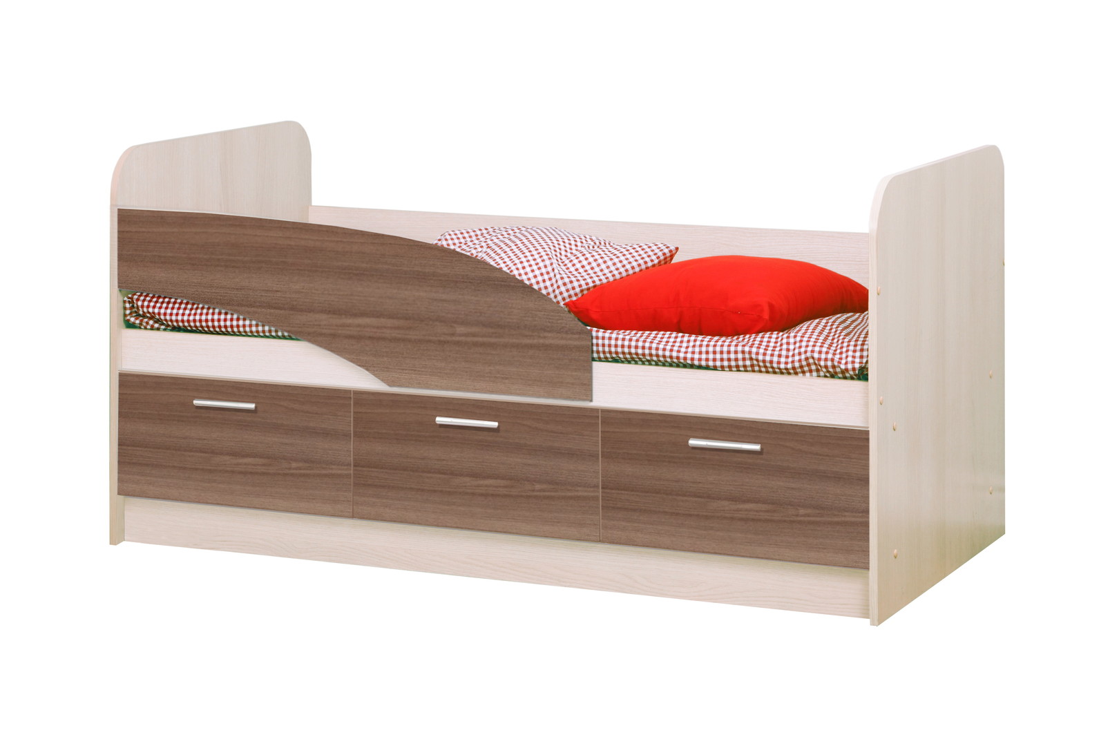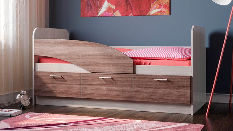 Отличный вариант детской кровати. Удобству способствует 3 вместительных ящика для белья и детских принадлежностей, а для большей безопасности имеется бортик.