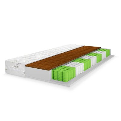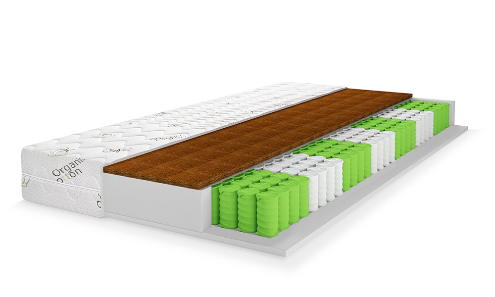 Натуральный гипоаллергенный материал. Благодаря пропитке из натурального латекса, волокна прочно скреплены в цельную плиту. Кокосовое волокно придает матрасу жёсткость и обладает бактерицидными свойствами.
